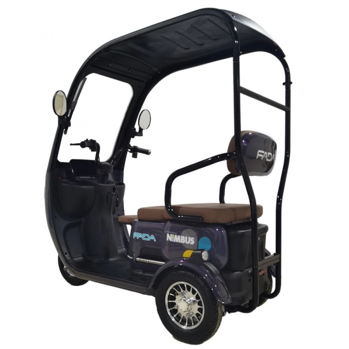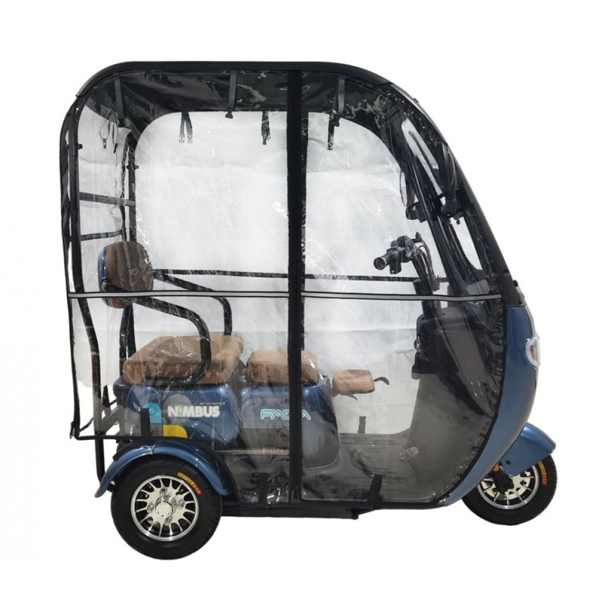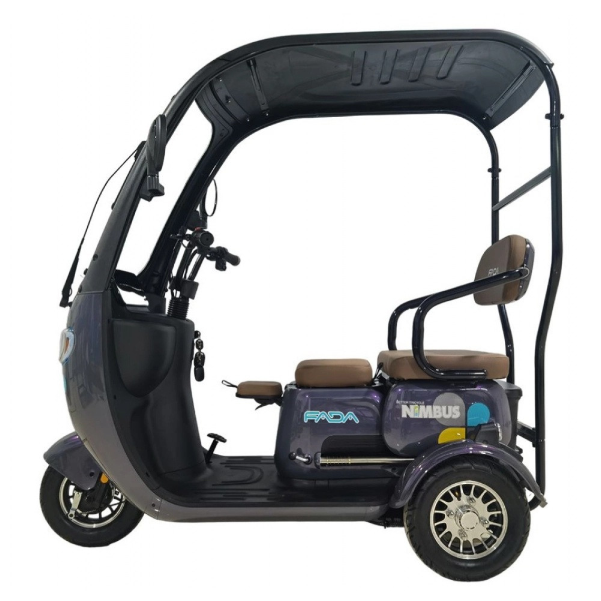 Електротрайк (трьохколісний електротраспортний засіб) FADA NiMBUS Електротрайк FADA NiMBUS є новинкою 2024 року! Модель являє собою поєднання доопрацювань технічної складової моделей електротрайків FADATM і варіант, який реалізований у корпусному виконанні з лобовим склом, дахом і може пропонуватися в комплектації зі знімним, м“яким периметральним дощовиком з вінілової плівки. Таке виконання є поєднанням практичності та захищеності від можливо зовнішніх несприятливих умов під час його експлуатації. Звісно, чесно кажучи, треба наголосити, що дана модель не має задатків всюдихода і експлуатувати її буде потрібно з розумінням того, що все ж таки це насамперед електричний трайк, транспортний засіб для переміщення по звичайних дорогах, тільки виготовлений з урахуванням безумовної можливості використання навіть у холодну осінню пору у період опадів та вітрів. Зовнішність і дизайн NiMBUS спроєктовані передусім для зручності керування та максимальної обтічності на догоду зменшенню коефіцієнта лобового опору та меншому ступеню розряджаємості тягових батарей. Елементи пластику, фари головного світла та дзеркал вдало доповнюють і вигляд моделі, і функціонал. 1. Рама цієї моделі, точніше саме її структура, є такою, що дало змогу розширити базу конструкції, збільшити внутрішній простір та розташувати елементи внутрішнього комфорту на більш зручне для водія та його пасажирів. Наприклад, ступні ніг водія легко розмістити протягом усієї довжини підніжки. Може, декому це здається не настільки важливим, але насправді для власників з обмеженими можливостями або травмами гомілковостопних суглобів такий варіант є набагато зручнішим у процесі їзди та в плані посадки/висадки. 2. На основі такого технічного рішення виробник вдало реалізував функціональну практичність - це зовнішній захист, який складається з фронтального лобового скла зі склоочисником (двірником), жорсткий пластиковий дах, що встановлюється на спеціальні кронштейни, та дощовий кожух, який за вагою взагалі ніяк не обважнює модель і тим самим не відбирає корисної енергії, проте позитивно впливає на елемент необхідного захисту від кліматичних умов як водія, так і пасажира. 3. Технічною особливістю всіх трайків FADA є електродвигун. Це не вбудований варіант велосипедного мотор-колеса. Мотор на FADA NiMBUS є відокремленим тяговим модулем виносного типу. Він безщітковий з приводним валом (сердечником) з термоукріпленої сталі. Це двигун у власному герметичному корпусі з алюмінієвого сплаву з розвиненими ребрами для зовнішньої тепловіддачі. У конструкції двигуна застосовано одну з новітніх технологій, яка заснована на використанні не неодимових магнітів, а алюміній-нікель-кобальтових елементів зі сплаву AlNiCo. Магніти цього типу мають гарну термостійкість і механічну міцність. Відливання - є найбільш широко використовуваним методом виробництва таких магнітів. Вони використовуються в гальмівних системах ABS в автомобілях, язичкових контактах, датчиках і медичному обладнанні. Сплав AlNiCo має низку важливих характеристик: низька коерцитивність; Високий рівень залишкової індукції: магніти деяких форм можуть створювати потужні магнітні поля. Порівняно з феритовими магнітами, мають набагато більше значення індукції насичення та, відповідно, залишкової індукції; максимальна робоча температура 
