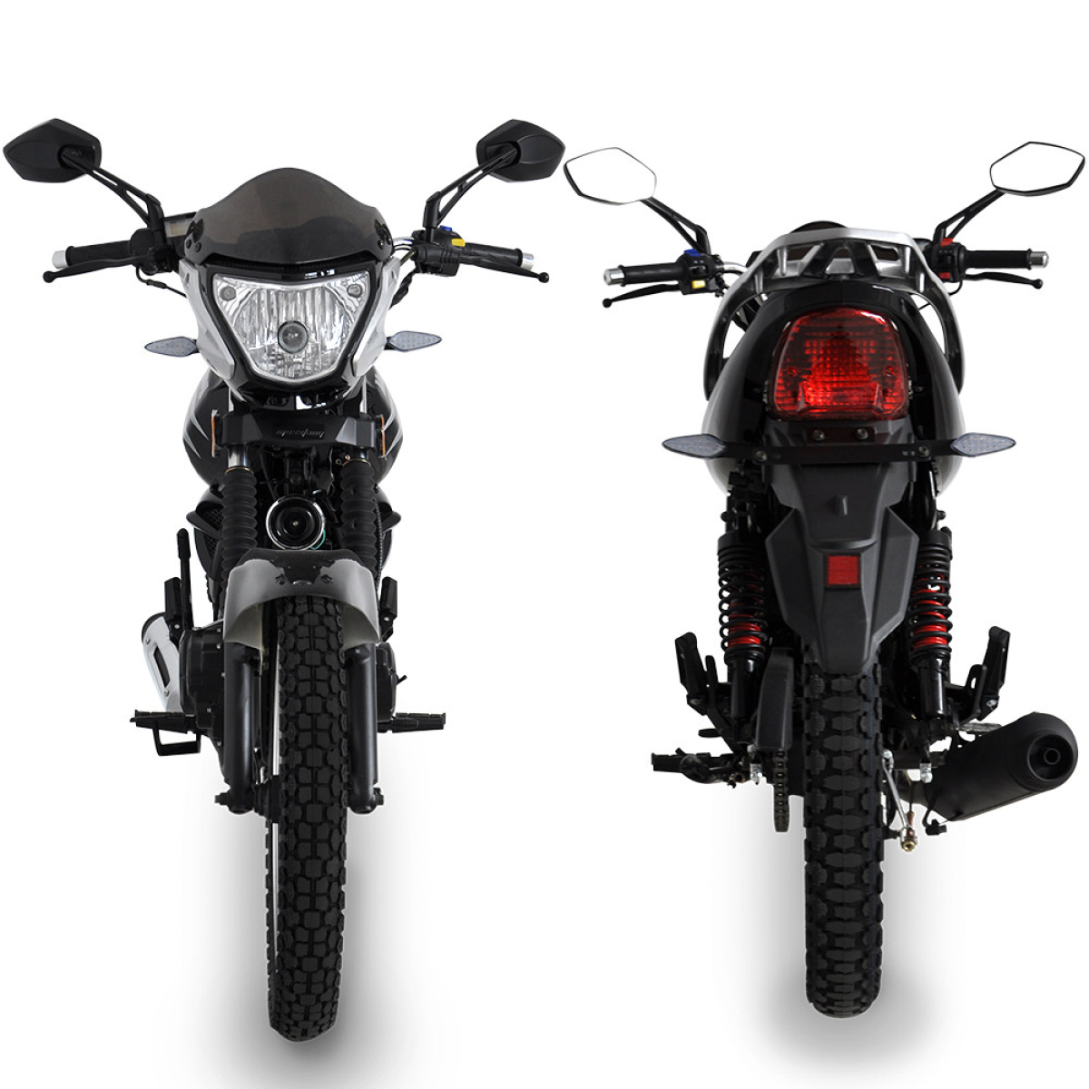 7. Дзеркала заднього виду – нестандартні. Запозичені від скутерных моделей. Вони мають велику площу і більший виліт сторін , в порівнянні з типовими маленькими дзеркалами на бюджетних моделях мотоциклів. Ручки керма з прогумованого пластику, а не з “погано пахне гуми“, і в торцях керма знаходяться металеві наконечники.