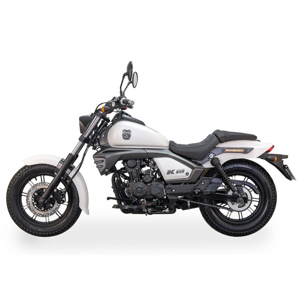 Модель К19 буде пропонуватися в чотирьох колірних рішеннях, які ви можете побачити в числі вже доступні на сайті основних фотографій. Мотоцикл, деталі якого наведено у тексті опису забарвлений в темно-сірий матовий колір.