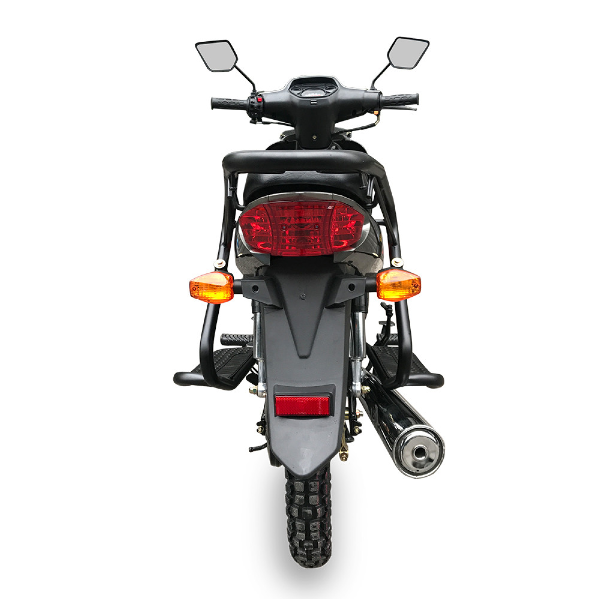 4. Змінилася форма глушника. Тепер цей елемент відповідає сертифікаційним вимогам за рівнем шуму вихлопу, а також оптимізовано з точки зору виведення конденсату з “бочки“. Нагадаємо, що у багатьох аналогічних моделей від інших виробників періодично-постійне скупчення конденсату було основною причиною прогоряння глушника зсередини. На новій модифікації є кілька технологічних отворів для зливу як на нерухомому мопеді так і при русі, оскільки режими проходу вихлопних газів на холостому ходу і при русі істотно відрізняються