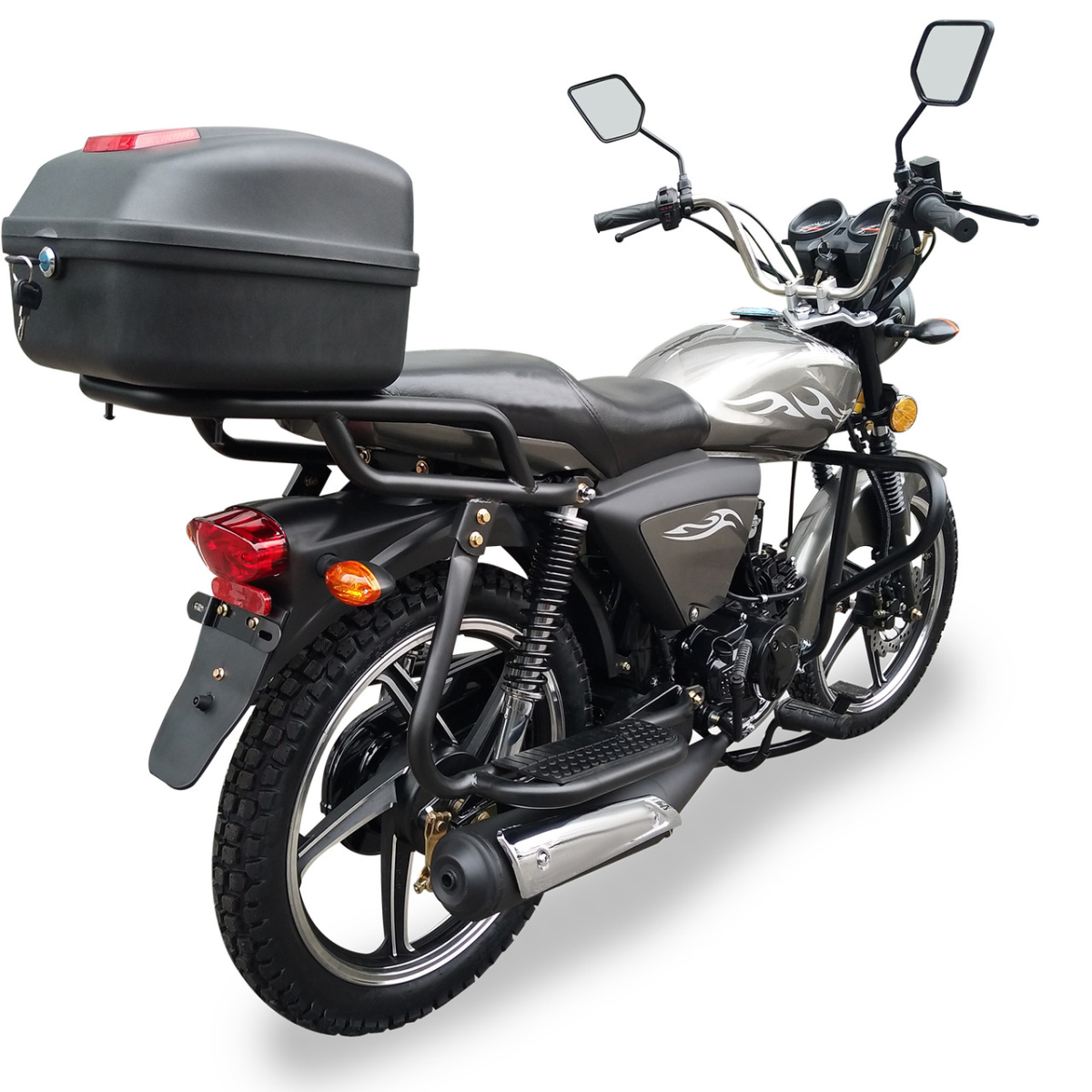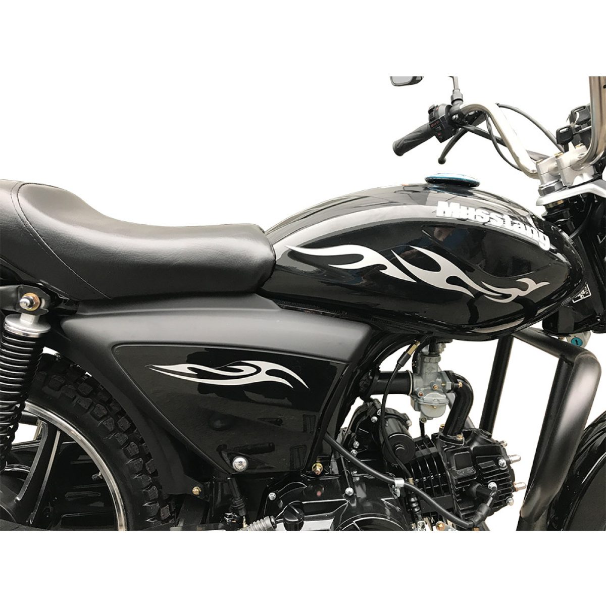 Згадаємо також про те, що на мопеді Musstang Alfa FiT МТ125-8 встановлено кермо з нержавіючої сталі зі збільшеною висотою, який більш зручний в управлінні, а також стандартним опціоном є мотоциклетні дзеркала заднього виду. Вони більше за площею і в їх конструкції передбачений гвинт-фіксатор положення, який позбавить власника від постійних коригувань виставленого положення.