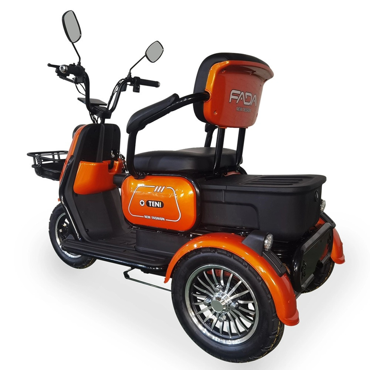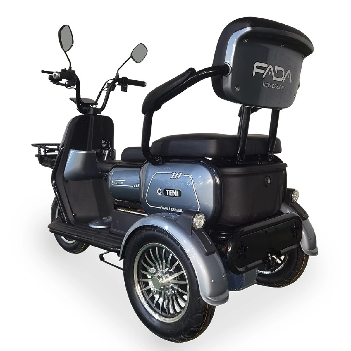 Триколісний FADA TENI в першу чергу орієнтований на мобільність двох людей в умовах невеликих відстаней. Він у будь-якому випадку більш стійкий, ніж двоколісний велосипед, і не вимагає особливих навичок в управлінні. Не треба чекати від нього динамічних надможливостей, тому що він спочатку призначений для зовсім іншого: зручного переміщення кількох людей або однієї людини у спокійному та безпечному темпі. Проте двигун потужністю 650 Ватт дозволить моделі пересуватися впевнено навіть в умовах місцевості, яка має значні перепади рельєфу.
